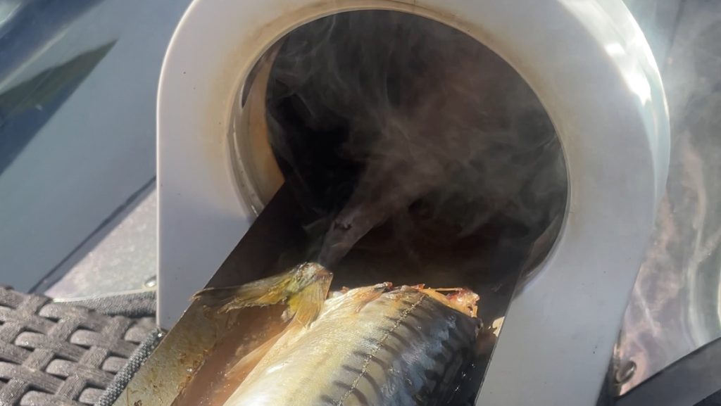Aujourd’hui, j’ai testé une recette toute simple : deux maquereaux frais, cuits directement au four solaire tube. Aucun ajout superflu,
