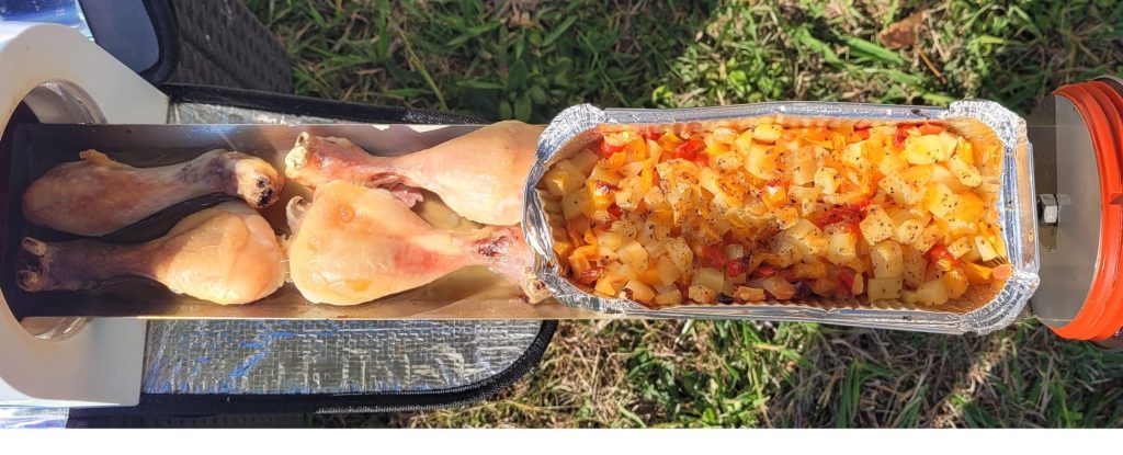 Aujourd’hui, j’ai voulu tester une cuisson un peu plus ambitieuse au four solaire tube : le poulet. J’ai utilisé des